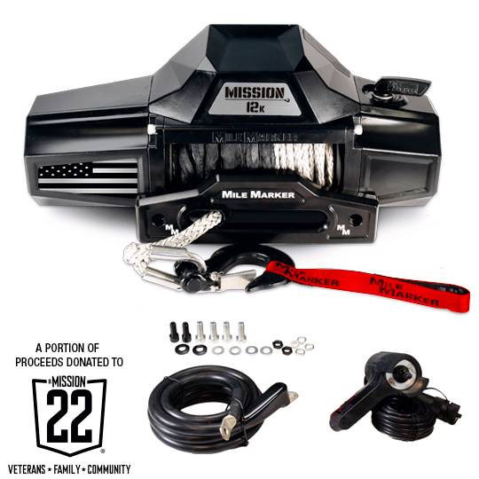 Built for strength, precision, and pride, the Mile Marker Mission Series Winch Flag Edition combines rugged performance with patriotic spirit. Engineered for reliability in the harshest conditions, it delivers unmatched pulling power and control. Whether tackling trails, work sites, or recovery missions, this winch stands ready—power, durability, and heritage in one. Mile Marker is pleased to have partnered with Mission 22, a national community that stands beside our Veterans and their families. A portion of the proceeds for every Mission Flag Series winch will be donated to Mission 22 as a token of our gratitude for these heroes and their families.