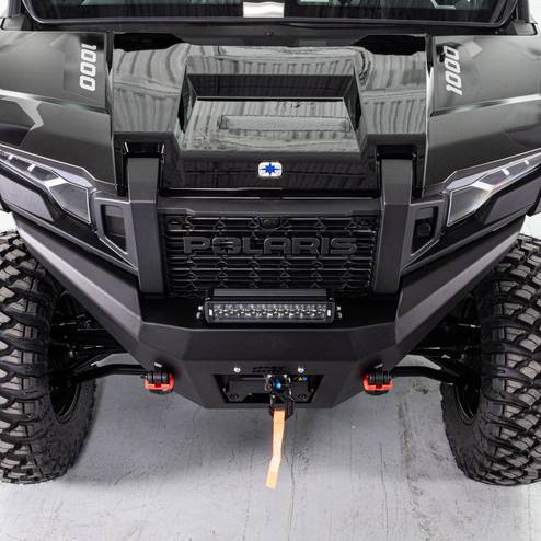 The HMF AD Front Bumper for the Polaris XPedition is designed for extreme strength, durability, and versatility. Made from steel, it provides front protection with a bold, angular design that can help navigate through rocky trails or tackle extreme terrain. Delivering the toughness you need, this bumper also includes a bracket for easy installation of an HMF XD Winch, giving you the flexibility to upgrade your winch setup.