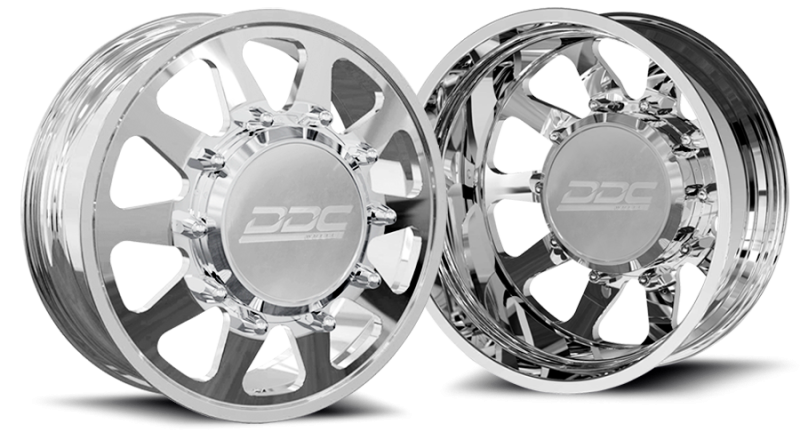 DDC Wheels are designed to bring superior form, fit and function to your dually pickup. Our 8 lug dually wheels incorporate an attractive 10 lug design that comes standard with our bullet style lug covers, or these can be upgraded to spike lug covers.