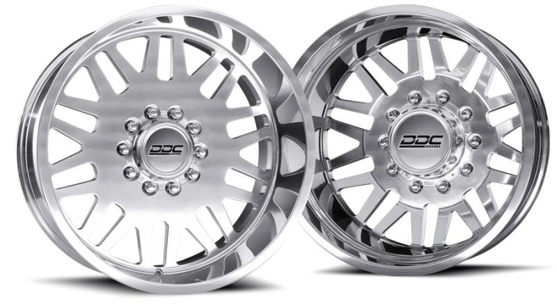 DDC Wheels are designed to bring superior form, fit and function to your dually pickup. Our 8 lug dually wheels incorporate an attractive 10 lug design that comes standard with our bullet style lug covers, or these can be upgraded to spike lug covers.