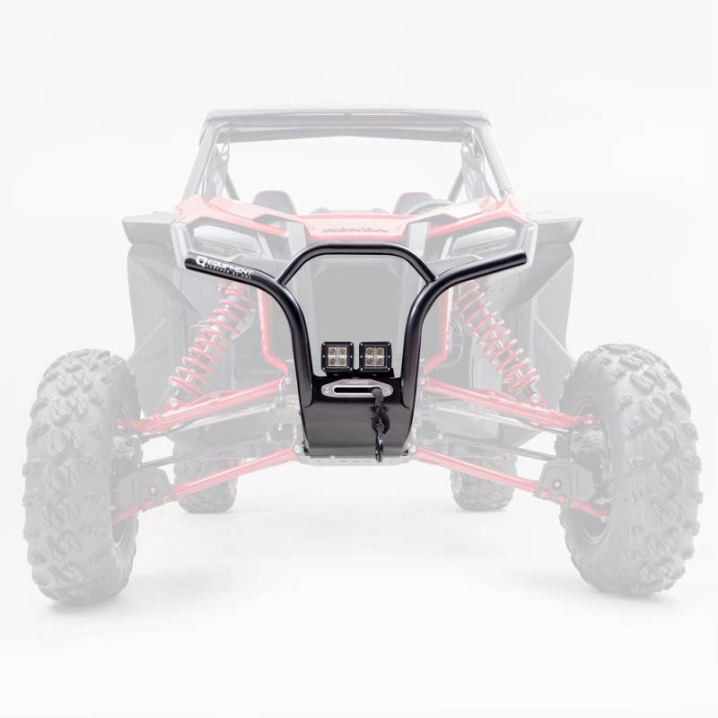 The HMF HD Front Bumper for the Honda® Talon 1000R/X is constructed from .095” wall steel tubing and not only protects the front of the machine but also offers an integrated winch mount plate. The bumper also comes with a 3/16” aluminum skid plate with a cutout to mount a winch fairlead. The bumper works with UTV fairleads with 6” mounting hole spacing. LED lights may also be mounted on the bumper. All necessary hardware and instructions are included. Available color options will match the manufacturer’s color scheme.