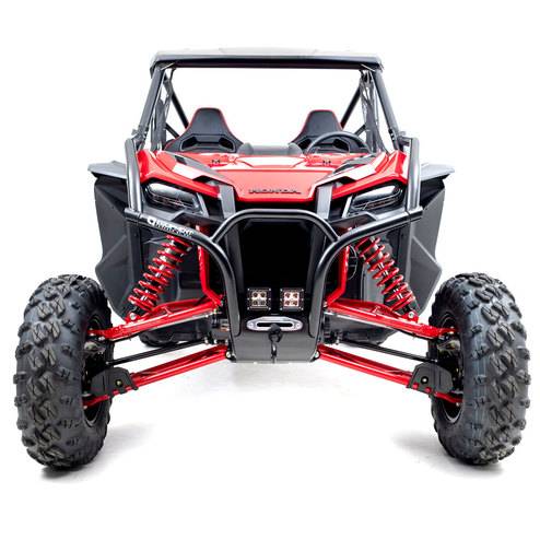 The HMF Exo Bars for the Honda® Talon 1000R/X offer an extra layer of protection and reinforcement to the front of the machine. Constructed from .095” wall steel tubing, the Exo Bars are designed to work like an exoskeleton, linking the HMF™ HD Front Bumper and the factory roll cage together for additional protection and strength. Ideal for owners looking for the ultimate strength and protection, the Exo Bars install easily between the HMF™ HD Front Bumper and the factory cage with the included hardware. No additional, cutting, welding, or modification is required to install, and will not interfere with hood removal. Available color options will match with the manufacturer’s color scheme.