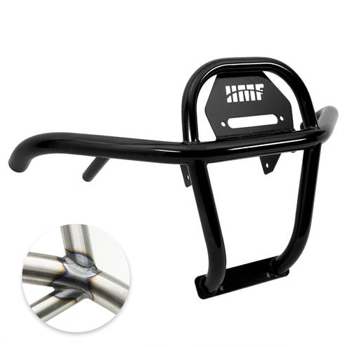 he HMF U4 | Front Bumper for the Kawasaki Teryx KRX 1000 is built from .095" mandrel-bent steel tubing and not only protects the machine but also offers an integrated winch mount plate. The U4 bumper works with UTV fairleads that have 6" mounting hole spacing and the bumper itself adds an incredible look to the front of the machine. The bumper extends only 6" past the front fascia to keep the overall length down and will not negatively impact approach or departure angles.