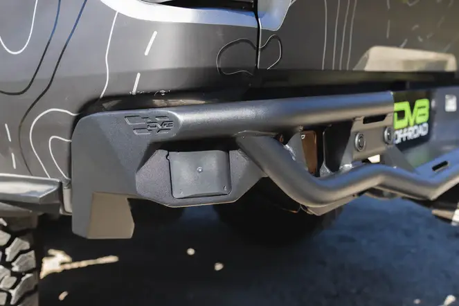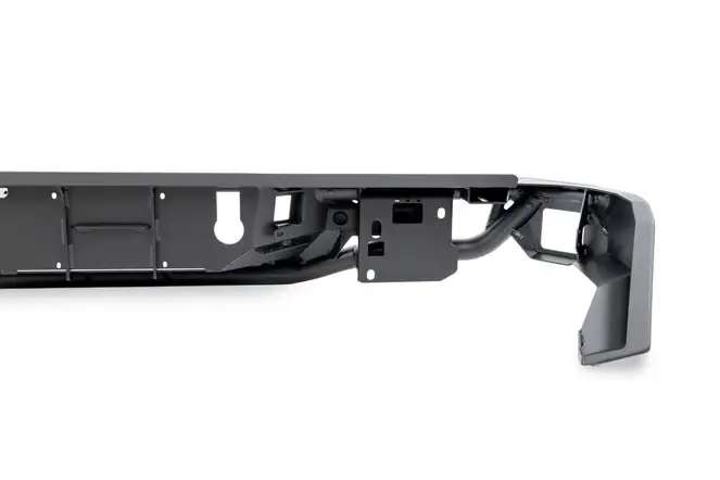 Designed with integrated lighting capability, the bumper features two 3” pod light mounts for added rear visibility on the trail or in low-light conditions. It retains full functionality of your truck’s factory systems, including the hitch, license plate lights, parking sensors, and blind spot monitoring, making it a seamless upgrade without sacrificing OEM features.